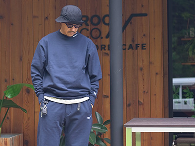 スウェットパンツとフーディー、またはクルーネックとのセットアップスタイルも可能です。