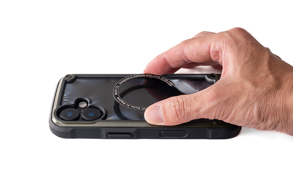 MagSafe非対応のGRAVITY Shock Resist シリーズ(+Hold.・Tough&Basic・Elk.)のケース背面に貼り付けることでMagSafe対応を可能にするメタルリング。