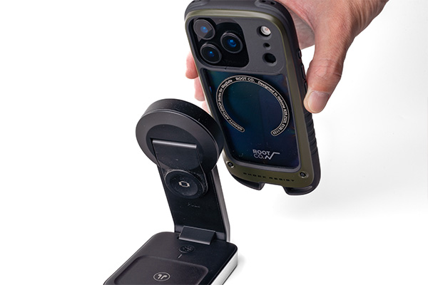 MagSafe対応マルチ充電器「PLAY EZ Fold – 3 in 1 Mag Safe Charging Station」やMag Safeカーマウント「PLAY EZ1 MagSafe Wireless Car Charger」等、各種MagSafeアクセサリーへ取り付け・対応が可能となります。