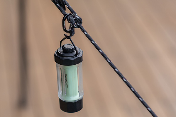 またはコードやロープ類にカラビナをひっかけ「ギア用フック」として。
